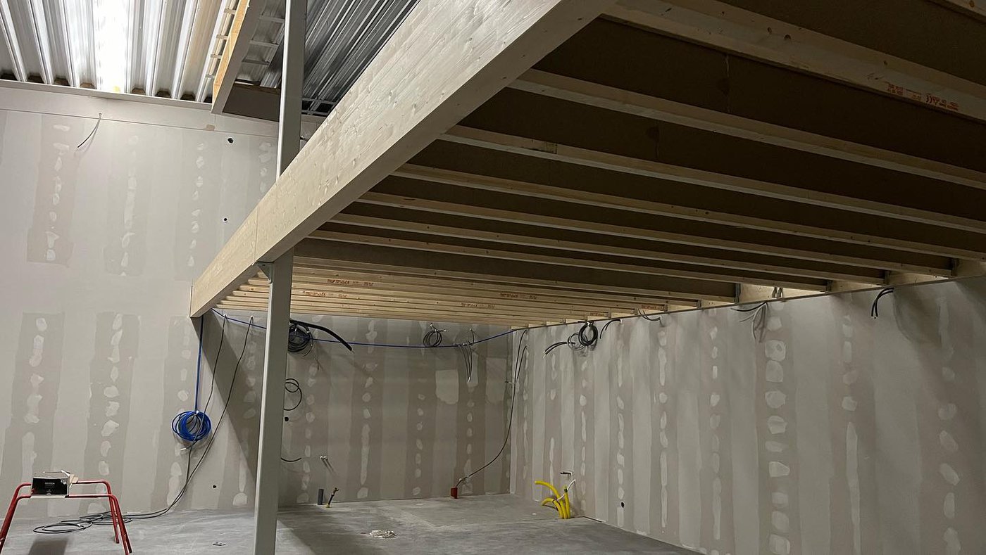 I Vallstanäs börjar garagelokalerna ta form. Vi har sedan några veckor tillbaka fått tätt hus på båda husen, och kunnat fokusera fullt ut på de invändiga arbetena. Vi har invändigt rest samtliga lokalavskiljande brandväggar samt börjat montera de totalt 15st bjälklagen i olika storlekar.