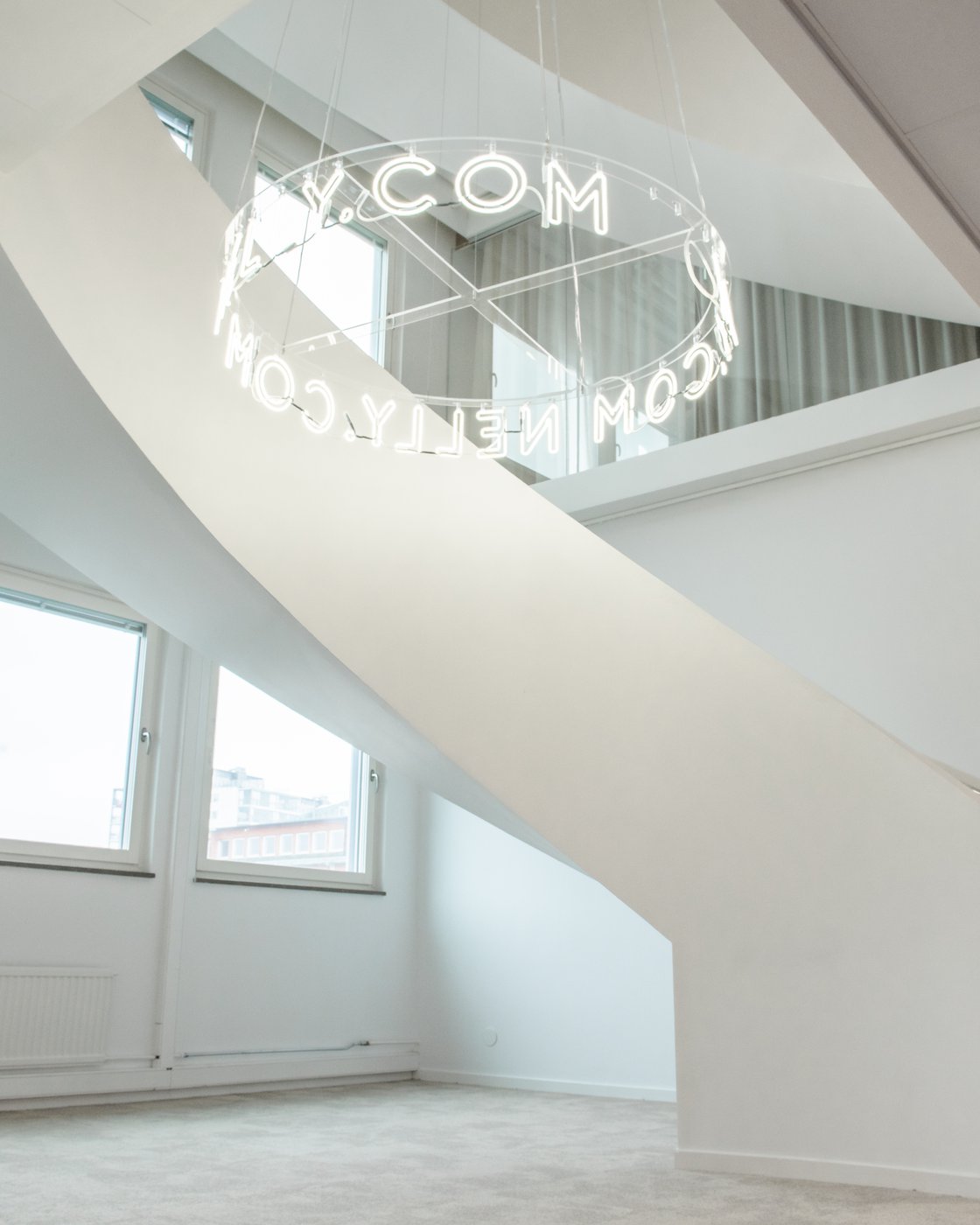 Det nya huvudkontoret täcker över 3000 m2 och består av tre våningar, med en tillhörande terrass vid köket. Inredningen går i Nellys lättsamma och färgglada tonalitet och ytan har optimerats för att man ska kunna arbeta i ett öppet och inspirerande klimat. Tack för uppdraget. Hoppas att ni kommer att trivas, Nelly!