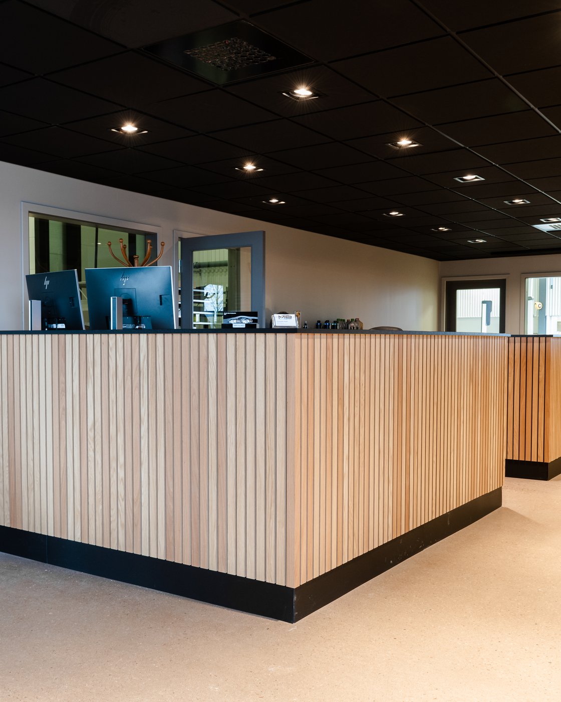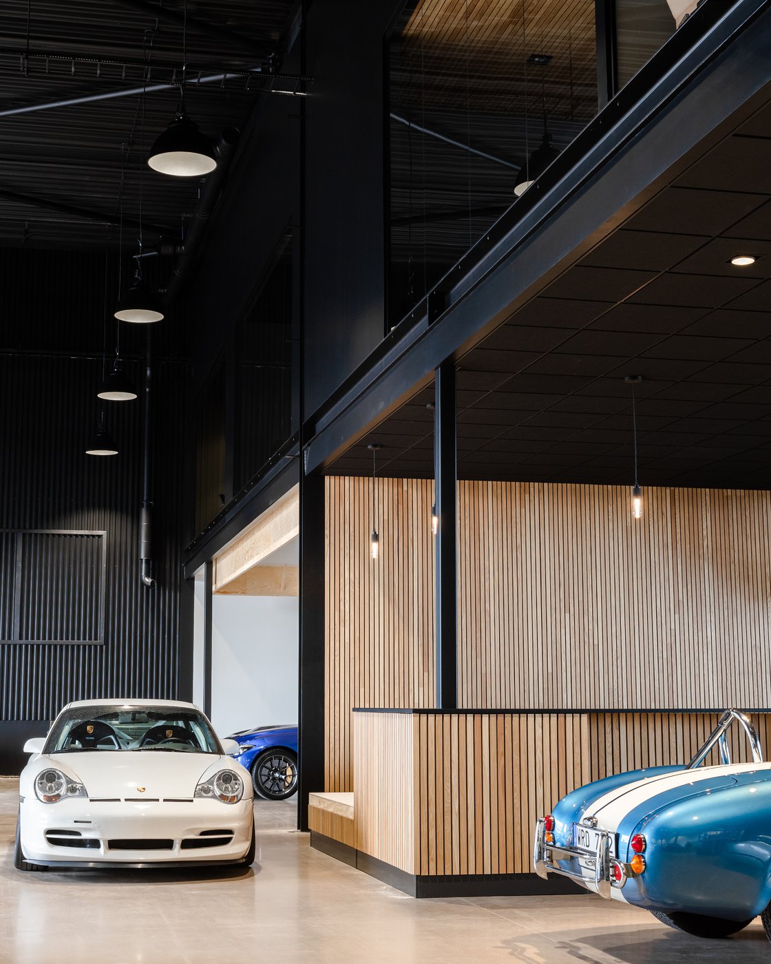 Helrenoveringen för Johns Garage är färdigställd. I projektet lade vi mycket fokus på att skapa ett en enhetlig och exklusiv känsla som går i linje med, och även framhäver, bilarna i hallen. Större delen av inredningen går i en mattsvart färg, och mycket energi har lagts på att få till detaljerna. Vi tackar Johns Garage – hoppas att lokalerna passar både er och era bilar.